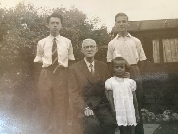 With my grandfather Alexander Samouropoulo who came to London from Turkey to die of cancer, and my two brothers, Rudolph and Frederick Mercer.